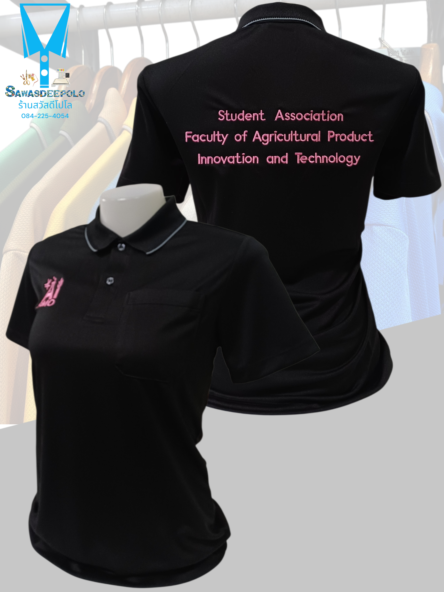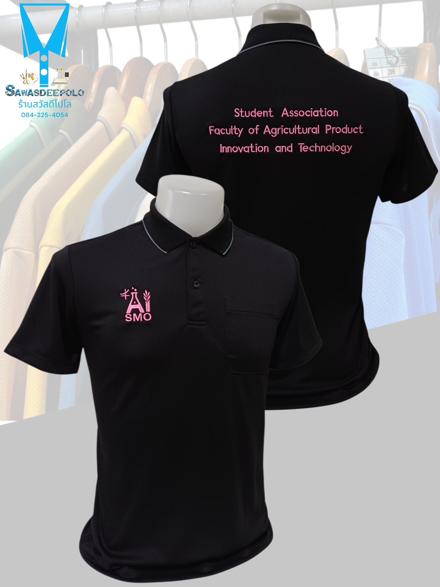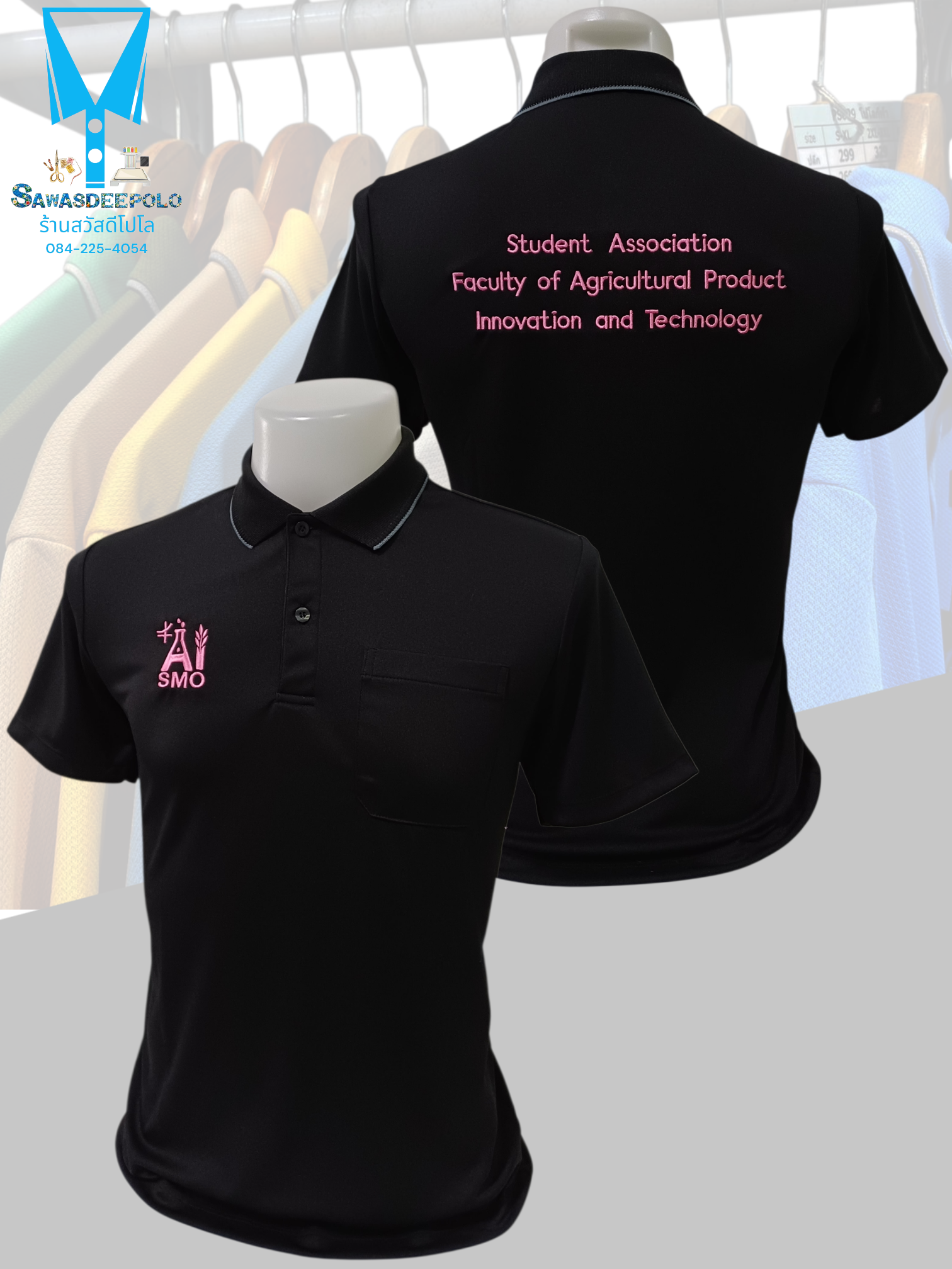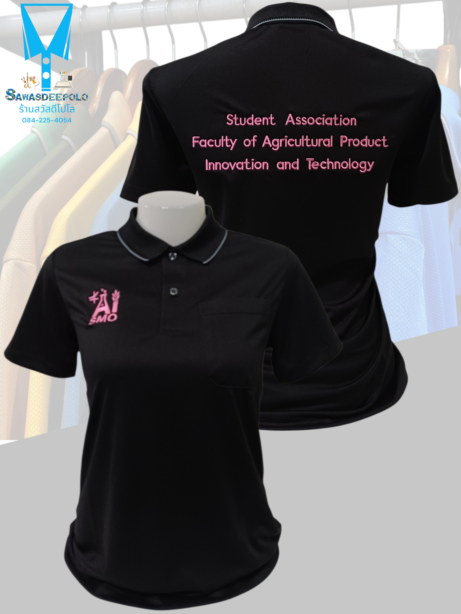 ขอบพระคุณ SMO AI สโมสรนิสิตคณะเทคโนโลยีและนวัตกรรมผลิตภัณฑ์ การเกษตร เสื้อโปโลสีดำ ผ้าดับเบิ้ลเฟรส ซับเหงื่อ ระบายอากาศได้ดี เนื้อผ้าทนทานอยู่ทรงไม่ย้วย ผ้านุ่มเย็นสบาย ไม่หมองง่าย ไม่ขึ้นขุย ไม่ต้องรีด พร้อมบริการออกแบบและปักโลโก้ มีไซซ์ XS - 10XL สนใจส