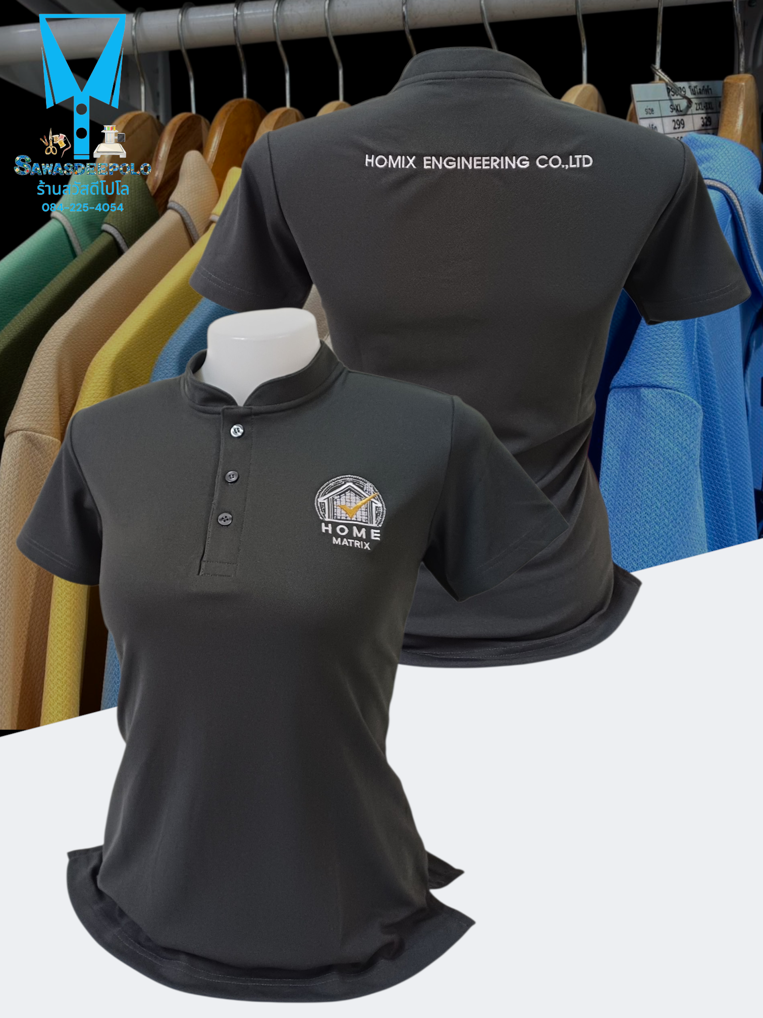 ขอบพระคุณ HOMIX ENGINEERING CO.,LTD เสื้อโปโลคอจีนสีเทา พร้อมรับปักโลโก้และชื่อ Plus ความนุ่ม เพิ่มความสบาย ผ้า Micro Plus + (ไมโคร พลัส) เส้นใยเล็ก ละเอียดเรียงตัวสวย ด้วยโพลีเอสเตอร์ผสมไมโครไฟเบอร์ เกรด A ทำให้ผ้านุ่ม เนียน ละเอียด คงทน ใส่เย็นสบาย ระบ
