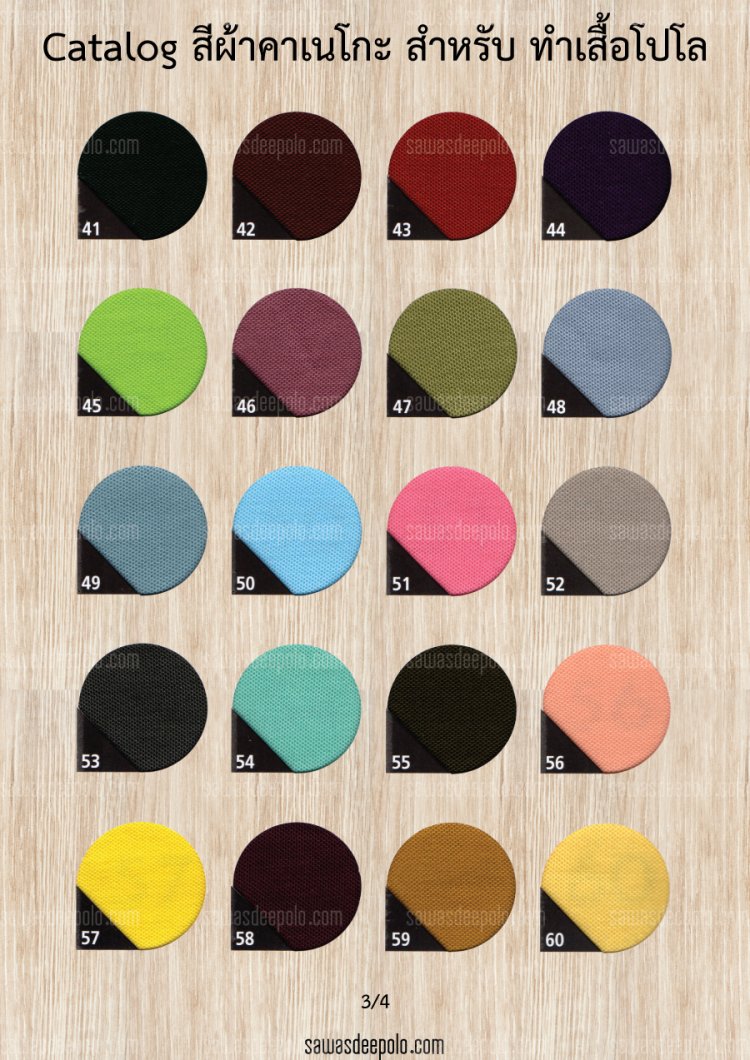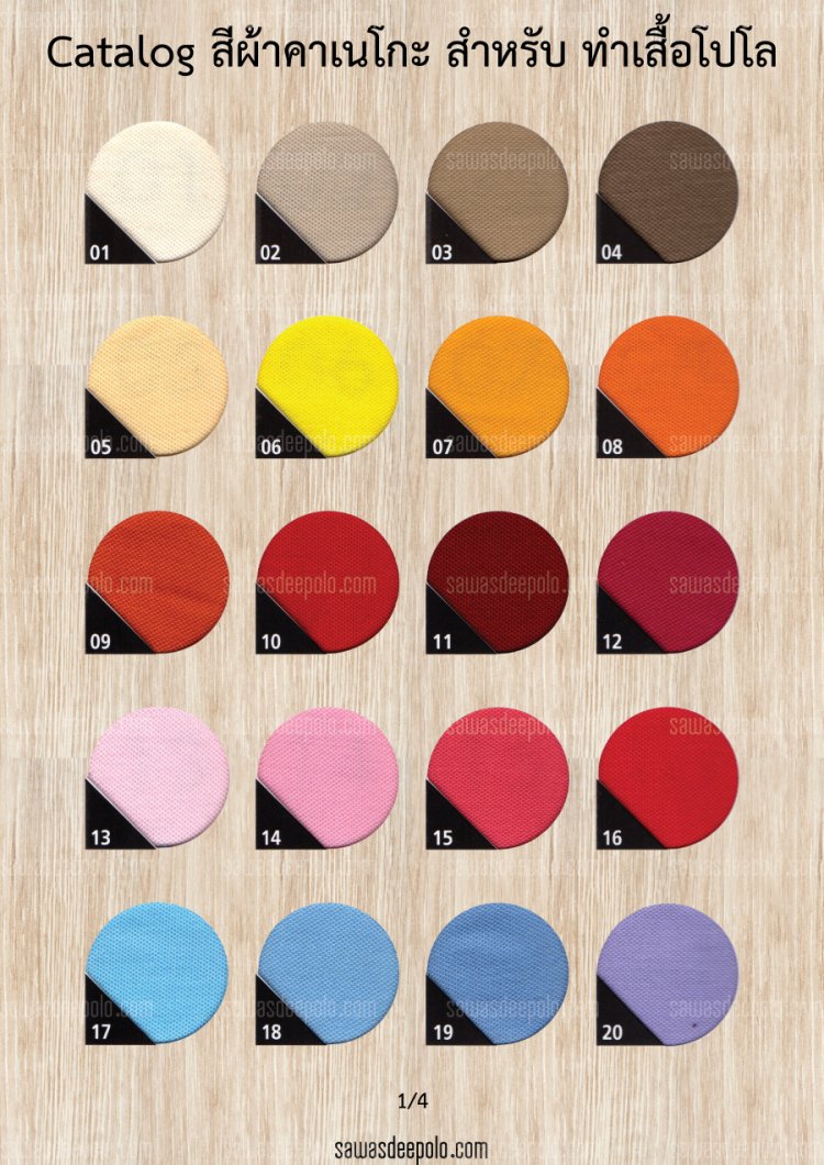 Catalog สีผ้าคาเนโกะ สำหรับทำเสื้อโปโล